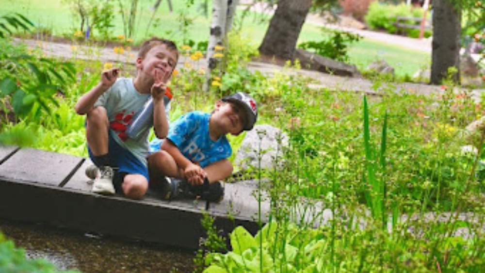 Walking Mountains summer campers sitting by the creek at Betty Ford Alpine Gardens.